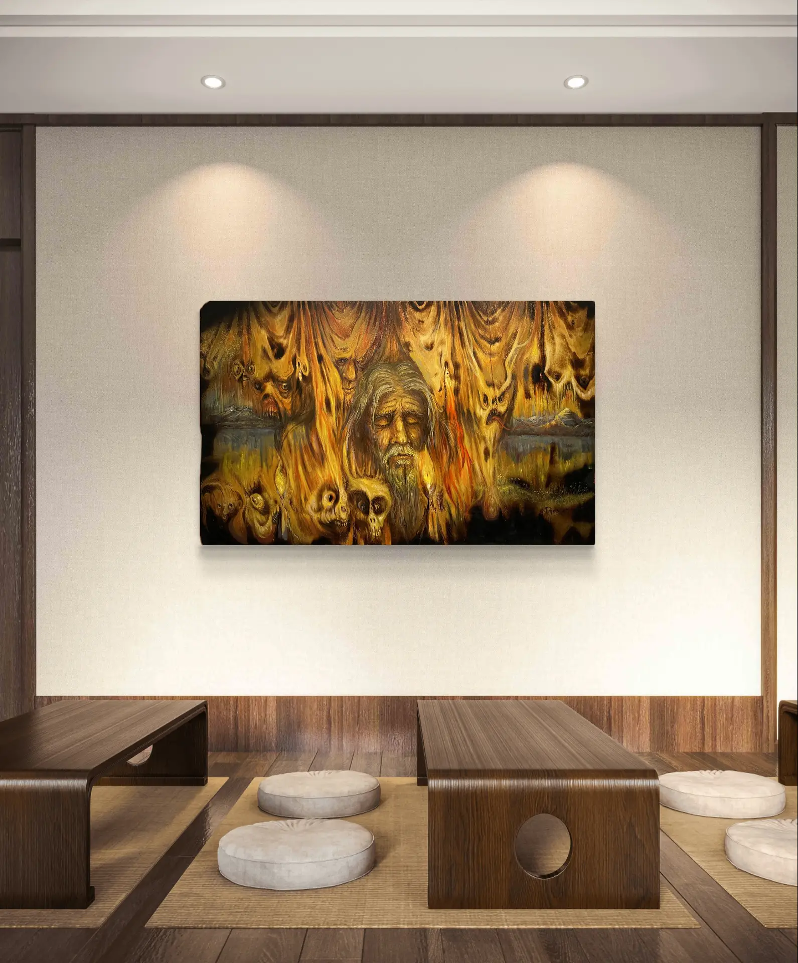 oil on burned plywood