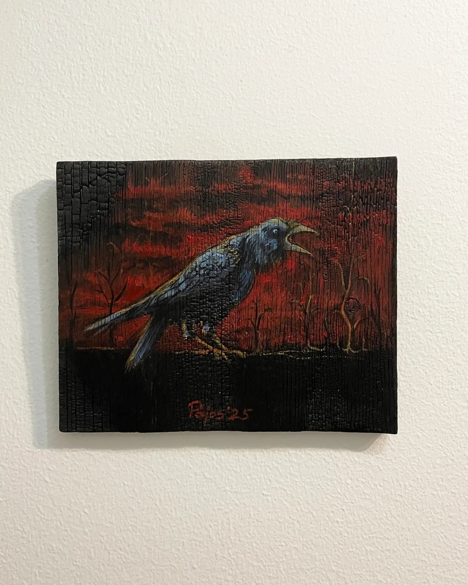 acrylic on burned plywood