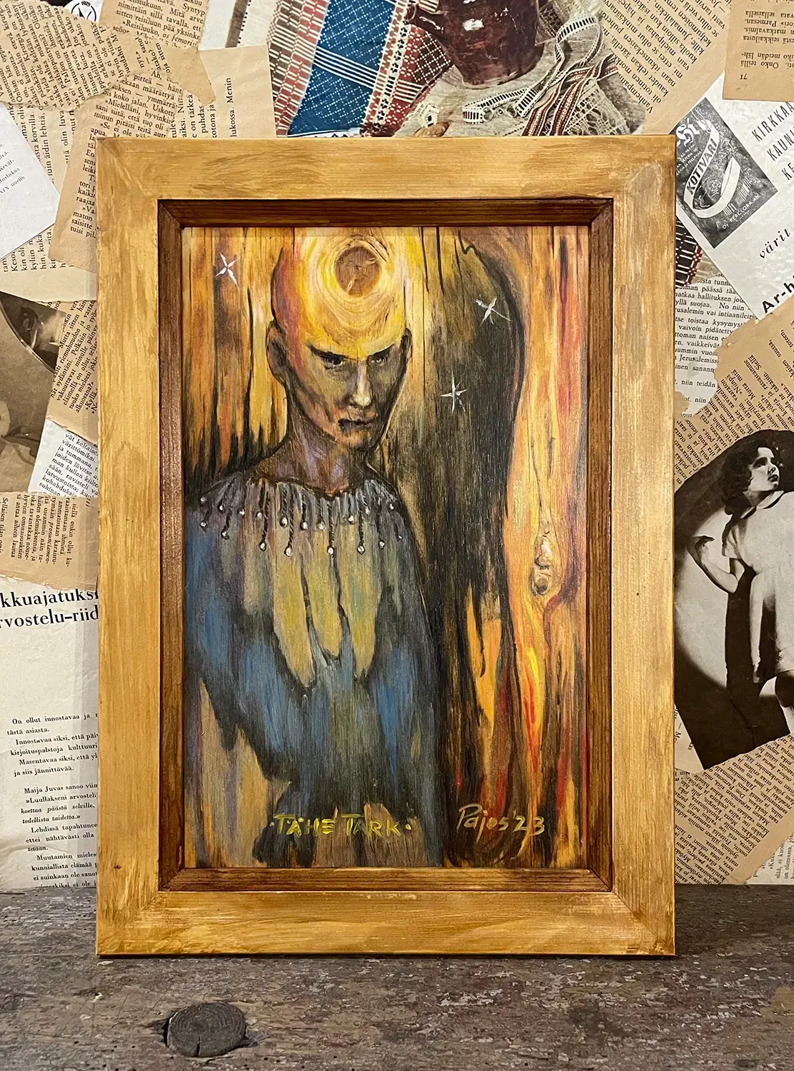 oil on burned plywood
